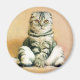 Um Gato Escocês De Arte Digital Sentado. Sarda de Cinza de Shorthair, Gato de Tabby. Sobre esta raça de gatos: Estes lindos gatos são adaptáveis e fáceis, mas às vezes um pouco "teimoso" e (como todos os gatos) têm uma mente própria! Um outro pequeno e engraçado 'quirk', que é único para o Scottish Fold Cats, é a sua estranha habilidade de se sentar ereto, no seu bumbum com as suas pernas traseiras heteros fora, como uma lontra, ou mesmo um pequeno Buda peludo. Eles têm o seu nome da forma única como seus ouvidos são dobrados para frente. Esta raça tem uma expressão doce, de olhos largos, numa cabeça arredondada, num pescoço curto e num corpo resistente, compacto ou "arredondado" (quase gordo). Isso os torna quase insuportavelmente adoráveis e eles mantêm essa beleza de gatinho mesmo quando adultos. Pintura original de Donna Leger.