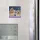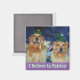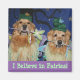Este ímã apresenta recuperadores de ouros vestidos como fadas segurando varas mágicas em suas bocas. A mensagem diz: "Eu acredito em fadas".
