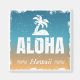 Vetor aloha com cores quentes de praia, retrô fundo. Bordas grossas no estilo de gradação. Ícone tropical da ilha com palma. | © e ® Bigstock® - Todos os direitos reservados.