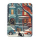 Retrô ilustrativo de Nova Iorque na neve com o céu noturno em aquarela