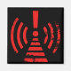 Striking retro-futuristic hazard icon with pulsing red lines and a distressed warning, old-school terminal screen vibes.