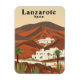 Explore a ilha vulcânica cativante de Lanzarote com este imã de ilustração de viagem retrô. Este souvenir das Ilhas Canárias espanholas captura as paisagens únicas e dramáticas deste belo destino. Perfeito para entusiastas da Espanha e coletores de memórias da viagem europeia retrógrada.