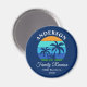 Reunião Familiar Summer Beach Palm Trees Sun Retro Style Marinho Blue Refrigerator Magnet. Excelente para férias de reagrupamento familiar de acampar na praia a um cruzeiro de barco. Personalize com seu nome de família, local, ano ou data e muito mais.
