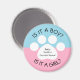 Este ímã exibe uma pata branca sobre um fundo azul e rosa e o texto "É um menino? É uma menina?" Estes ímãs são excelentes para impressão de pata temática, temática para cães, temática para gatos ou gênero com tema animal revelam partidos.