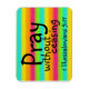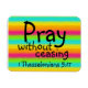 Este ímã bíblia flexível é feito sobre fundo listrado em arco-íris pintado com a escritura "Reze sem cessar 1 de Salónica 5:17"