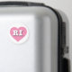 Este ímã apresenta um coração cor-de-rosa tranquilo e legal contendo as letras maiúsculas, brancas e negrito RI, a abreviação oficial do estado de Rhode Island, o estado do oceano.