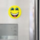Este ímã apresenta um rosto emoji amarelo risonho com olhos azuis.