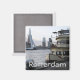 Um navio amarrado num cais ao longo do rio Meuse, na cidade de Roterdão, Holanda. No fundo, a ponte Erasmus e os novos arranha-céus do cais de Wilhelmina.