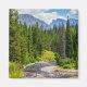 Uma vista do rio North Fork Shoshone fluindo através de algumas árvores verdes com montanhas ao fundo na Floresta Nacional Shoshone, Wyoming, Estados Unidos perto da entrada leste do Parque Nacional Yellowstone. Procurando mais produtos? Visite minha loja: http://www.zazzle.com/timelessmomentsphtgy A arte foi tirada por Jennifer White com Fotografia Moments Eterno. Todas as imagens são protegidas por direitos autorais.