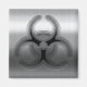 O símbolo de risco biológico em acabamento realista, recorte, textura em camadas de aço escovado.