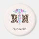 Este design bonitinho apresenta as letras "RN" em um impressão de cor-leopardo com um logotipo médico colorido. É perfeito para enfermeiras registradas.