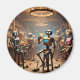 Futuristic robots enjoying a lively night at a neon-lit bar, sharing drinks, laughter, and music. A perfect blend of technology and fun, creating a unique cyberpunk party atmosphere.