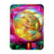 Uma pintura digital mesmerizante de um rosa a explodir com energia psicodélica e matizes arco-íris. As pétalas cor-de-rosa vívidas envolvem um ouro brilhante, criando uma peça central floral surreal.