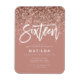 Efeito ouro-rosa, cinza-rosa-reluzente brilha o doce convite de 16 anos para a tipografia moderna. Design moderno mínimo com tendência com roteiro elegante. Parte de uma coleção de anos. Perfeito para a sua adolescente de vidro.