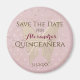 Borboleta de folha de ouro simples, na moda, elegante, em combinação com fundo brilhante cor-de-rosa - rosa dourado. Imã salve a data única, simples e adorável da Quinceanera.
