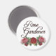 Rosa, jardineiro, para jardineiros, produtores e amantes. Em bonito letras de escrita com arte safena de flores cor-de-rosa e rosas vermelhas floridas ao longo do fundo.