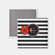 Íman listrado preto e branco com design de monograma e rosa no centro. Você pode personalizar este item adicionando seu nome ou inicial usando o modelo personalizado.
