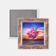 Rosa rosa rosa no céu de pintura a óleo em uma elegante imagem vintage.Um presente de precioso para os coletores de ímãs