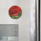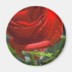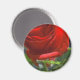 Grande Rosa vermelha com gota de água. O sol através da gota d'água faz uma estrela fora do reflexo.