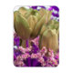 Bonito Tulipas Douradas com Folhagem de sotaques florais roxos e cor-de-rosa nesta imã de geladeira são tão Bonito!