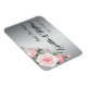 Um casamento prateado e cor-de-rosa, salvando a imã de geladeira, a design apresenta um lindo buquê rosa de rosas no canto superior, sobre um fundo metálico brilhante e prateado.