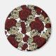 Imã Rosas vermelhas e crânios Preto Branco Floral Pret