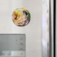 Bumble bee flying into a delicate pink rose flower nature photography by Susan refrigerator magnet. You can personalize this magnet with any text you like by clicking on Customize. This image is available on many products in my gallery.