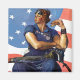Artista: Norman Rockwell | Trabalhadora de uma fábrica de mulheres, bandeira atrás, Mein Kampf a pé