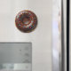 Rosquinha coberta de chocolate com borrifadas, imã de comida realista para segurar anotações e fotos na sua frita!