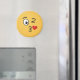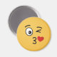 Um emoticon beijante. Um olho está aberto, o outro está piscando. Um coração é mostrado deixando a boca beijando.