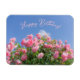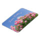 Este ímã apresenta um arbusto rosa rosa sob um céu azul - um motivo maravilhoso para desejos de aniversário e mais, para cada amante de rosa ou flor! Texto personalizável e cor no verso.