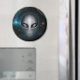 Uma representação de uma Alienígena de Cinza com fundo espacial.