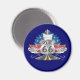 Íman azul escuro redondo com um design da Rota 66.