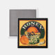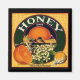 Vintage, laranja florescido, anúncio da empresa de mel. Em cores a negrito e quente de laranja, verde, branco e preto.