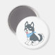 Um desenho animado, rouco preto e branco, com olhos azuis e bandana azul.