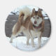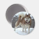 Uma Rouco vermelha onde ela gosta de ser a melhor, brincando na neve.