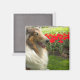 Sable Rough Collie n Red tulips Magnet