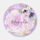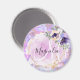 Magneta e chic com espirais de unicórnio arco-íris púrpura, um quadro floral dourado com flores azuis e cor de pêssego, e um fundo rosa esverdeado. Seu nome personalizado e monograma estão escritos em um roteiro elegante, escrito à mão. Você pode alterar a cor do texto, o estilo e o tamanho da fonte usando a opção personalizar.