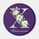Elegante falso branco metálico - Letra X monograma decorado com delicadas magnólias brancas e pénia laranja esbranquiçada, complementada com botânicos verdes empoeirados. É sofisticado e romântico! O nome personalizado na parte inferior unifica o design torna-o especial.
