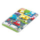 Artista: Marcus Cutler | ilustração de uma zona de ocupação urbana e ponto de ônibus com peões e carros, caminhões e compras e um rapaz de bicicleta