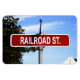 Este ímã com este cartaz de rua que viagens ao lado da ferrovia é perfeito para quem é fã de ferro e/ou trabalha em uma ferrovia em busca da foto especial do trem para adorná-lo em qualquer geladeira ou outras superfícies magnéticas. Este item também é excelente para doações durante o ano inteiro.
