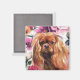 'Ruby' Magneta Cavalier dog art Um pedaço de arte colorido na sua geladeira com este 'Ruby' cavaleiro charles spaniel magnet com fundo floral.