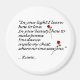 Um ímã redondo de 3 polegadas com uma citação amorosa de Rumi, o poeta Sufi do século 13 e místico. "À sua luz eu aprendo a amar. Na sua beleza, como fazer poemas. Você dança dentro no meu peito, onde ninguém te vê". Magneta doce com duas rosas vermelhas para dar ao seu amado.