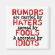 Design original. Direitos autorais. OS RUMORES SÃO TRANSPORTADOS POR ÓDIOS ESPALHADOS POR ROUBOS E ACEITES POR IDIOTAS. Gossip, filosofia. Adicione sua própria imagem e/ou palavras. Alterar o fundo para qualquer cor. Dê como presente a você ou a um amado! Excelente para eventos pessoais, familiares, publicidade, sensibilização humanitária, consciência ambiental, promoções ou eventos empresariais! Excelente para REVENDA. Quanto mais você pede, mais você economiza dinheiro! Direitos autorais. Corresponder a outros itens. **********Serviço de atendimento ao cliente********** Se tiver alguma dúvida ou dificuldades com um pedido, ligue para TEL: 1-888-892-9953 nos EUA ou (408) 983-2800 Internacional. Horas: das 8h às 18h PST (11h às 21h00), de segunda à sexta-feira. $$$$$$$$COMISSÃO$$$$$$$ Você pode fazer comissão de 15% se ligar minha loja e/ou qualquer solteiro à sua loja, site pessoal, facebook etc. Muito fácil e grátis! Entre em contato com o Serviço de Atendimento ao Cliente. PS: VOCÊ PODE ADICIONAR QUALQUER ARTE NO SEU FACEBOOK OU TWITTER OU EM QUALQUER OUTRO LUGAR, DESDE QUE VOCÊ AFIRME QUE É DE GalleriaofArt.com! (Melhor ainda se você ligar e ganhar dinheiro em $$) OBRIGADOS TANTO!