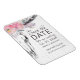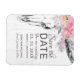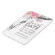 Anuncie seu noivado de casamento para a família e amigos com este livro chamado imã salve a data. Este modelo de design de tema rústico apresenta um crânio de vaca pintado à mão vestindo uma morada de rosa de cor-de-água floral cor-de-rosa pincelada sobre um fundo de madeira branca e cinza curvada. O cartão lê no roteiro de cinzas de carvão "Mude a Data, para o nosso casamento" com sua data de casamento e nomes para personalizar. A parte de trás do postal tem mais detalhes do seu casamento para personalizar também. Desenhada pela artista Susan Coffey.