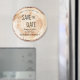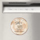 Personalize este casamento exclusivo Salve os ímãs do círculo de Datas. Ele apresenta um disco impresso de madeira cortada, e tipografia química perfeita para seu casamento rústico.