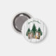 Rustic holiday magnet with gray wood background and dark green trees. Photo templates via Pixabay licensed under CC0 and must be replaced with your own photo