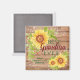 Celebrar a melhor vovó de sempre com este Magneto de girassol na moda rustico. O design é um fundo de madeira marrom-rústico, decorado com uma bonito cor d'água amarela, girassóis e cordas de luz. Faz um presente excelente para avós/ nanas / nanas aniversários, dias de as mães ou como um presente para que ela saiba o quão especial ela é. Pode ser personalizado com seu próprio nome para sua avó e depois personalizar com os nomes daqueles que dão o item.