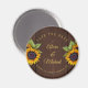 Casamento tradicional da Rússia salvará o ímã de guarda de data com belos buquês de girassol sobre um fundo de madeira marrom. ++++++ Ideal para um verão ou outono caia num elegante jardim ao ar livre, celeiro de fazenda ou casamento no quintal. Personalize-o com os nomes da noiva e do noivo, a data do casamento e o lugar!