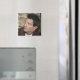 Magneta quadrada com uma foto de Ryan numa jaqueta de couro